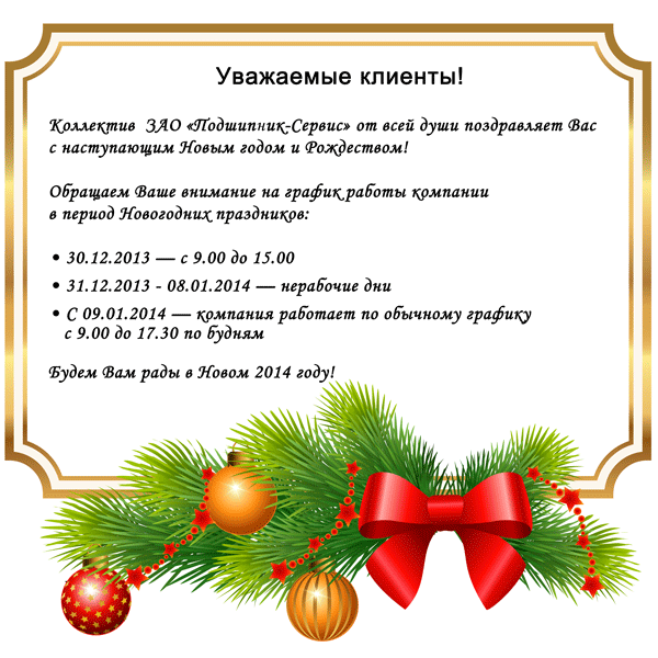 График работы в новогодние праздники